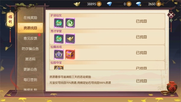 要是错过了活动,通过资源找回功能来提升综合实力算是比较轻松的办法之一,尤其适合每天上线时长有限的玩家。资源找回有免费和魂晶两种模式,能帮大家把前一天未完成的任务与副本奖励全部补领回来,像装备、材料、经验值这类都包含在内。