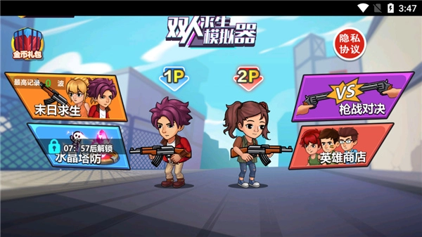 双人求生模拟器是一款适合两人协作的休闲益智类小游戏,操作简便,玩法新颖有趣,你可以随时和伙伴开启一局游戏。游戏设计了丰富的关卡和多样的武器装备,你和朋友能够挑选不同装备搭配协作,从而有效提升通关的速度。