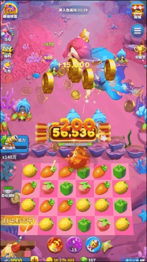 【创新玩法】射击与消除完美融合!在同一屏幕中,既能畅快消除水果,又能战斗击退海妖!