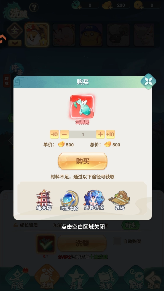 消耗对应的灵兽碎片或同稀有度的资质升星碎片,即可为灵兽升星,从而获得大量属性加成。