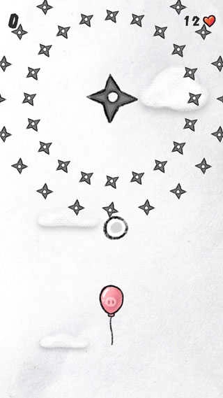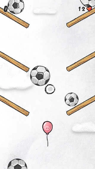 玩家需用手操控小球,持续阻挡或击飞从上方掉落的各类物品,防止它们伤害到气球。