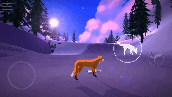 进入游戏后,狐狸在雪地中苏醒,随即触发剧情对话,接着操控狐狸向前移动。