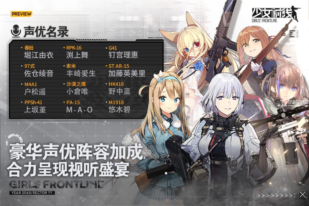 具有不同岗位特色的次世代游戏人形正等候您下达指令。每一位人形角色都是独一无二的。