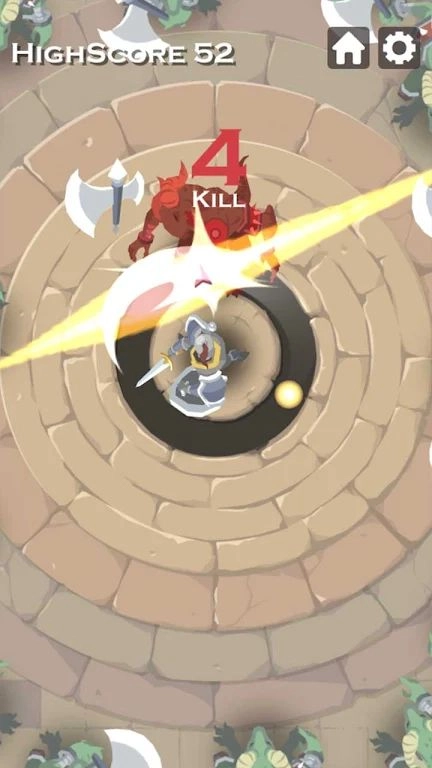 角斗士轮盘是一款采用圆盘竞技玩法的俯视角动作游戏,玩家将操控角斗士展开战斗,通过精准把握时机与快速反应来击败敌人。你需要瞄准来自四面八方的怪物,用手中的大剑精准劈砍,体验惊心动魄的爽快战斗与充满冲击力的瞬间。游戏操作简单,只需点击屏幕即可发起攻击,助你在最佳时机展开对决。