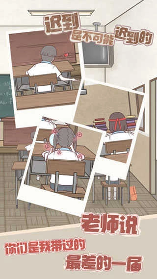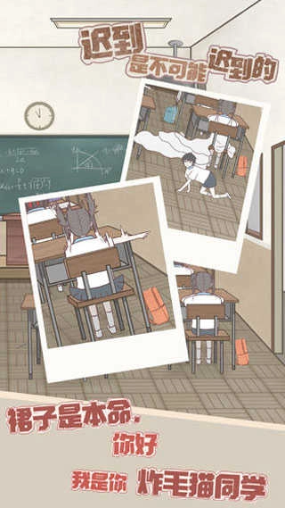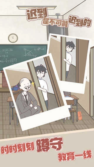 《迟到是不可能迟到的》是一款充满趣味的闯关游戏,它采用清新的手绘风格画面,以校园为背景展开。在游戏里,玩家要帮助迟到的主角悄悄溜进教室,这就需要去发现并运用场景中隐藏的各类道具,还要开动脑筋想出不同办法来分散老师的注意力,这样才能顺利完成关卡挑战。