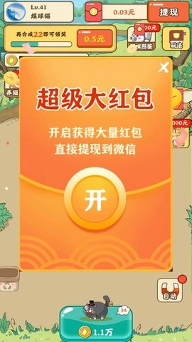 猫咪合成速度很快,玩家能解锁全新的猫咪品种,还能得到丰富福利。农场正等着玩家来打理,可爱的猫咪持续生产、合成,福利十分丰厚,玩家完全不用担心。新玩家只要登录游戏,就能拿到3元红包,随时都能到账,另外还有超多红包可以领取,只要不断提现就能获取更多红包。