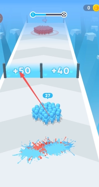 1、进入游戏后,操控人群挑选正确的通道前进,让队伍持续壮大。