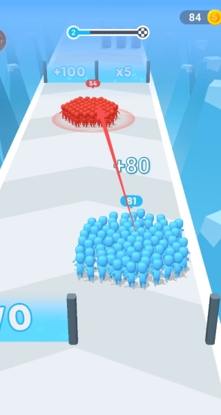 1、以比拼人数多寡为核心目标,在关卡中需兼顾扩充己方人数与避免减员,兼具策略性与趣味性。