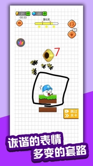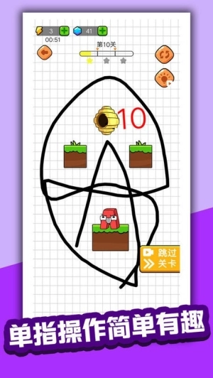 2、在屏幕上滑动手指即可画出连续的线条,既能圈住小人也能阻隔蜜蜂,操作方式简单易懂,却蕴含着丰富的策略性。