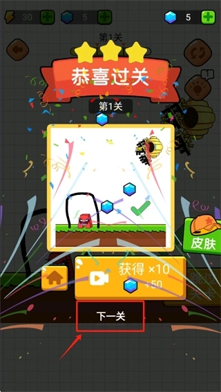 3、成功通过第一关后,点击“下一关”继续游戏。