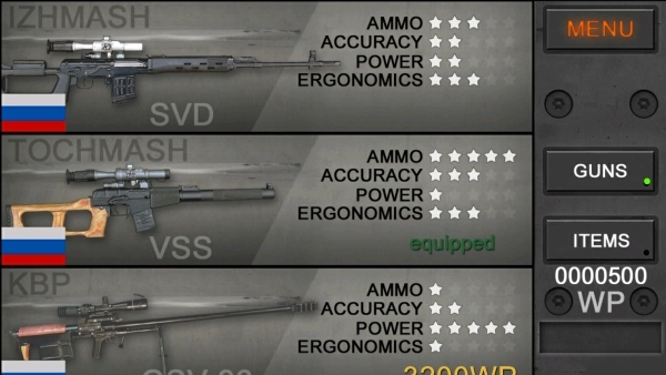3、游戏前期可以挑选属性比较均衡、操作起来也容易上手的枪支,像VSS(要是已经配备了的话)就很合适,先把它的弹道特点和性能都摸清楚。