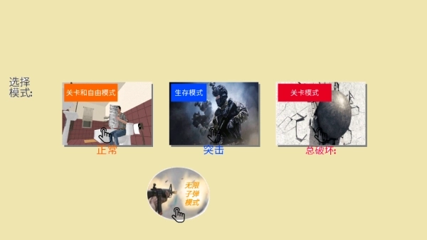 1.就像下图展示的那样,这里有多种模式可供挑选游玩。你能够享受到拆毁房屋和生存对战的趣味!