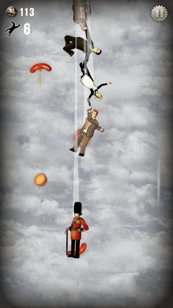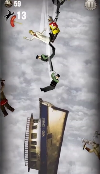5、用你的办法去黏住天上持续掉落的人,与此同时还得避开飞机和大鸟的撞击。
