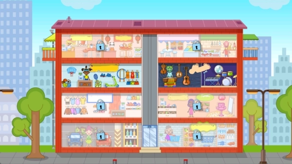 1.进入游戏后,点击建筑物里的房间,就能进去探索和玩耍啦!