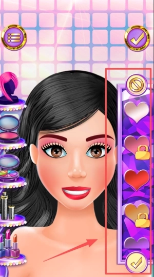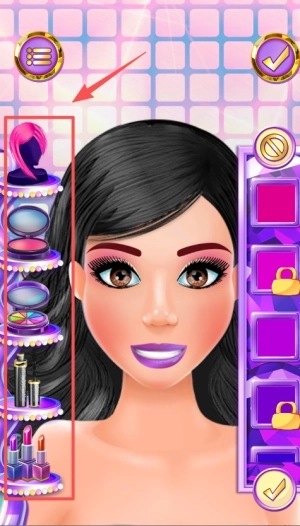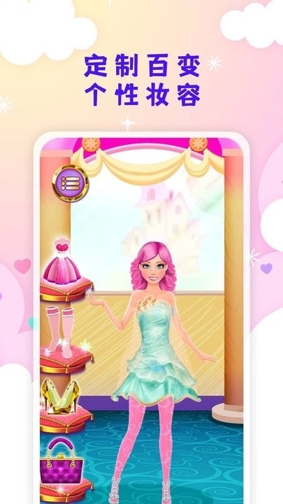 3、点击左侧的按钮,就能为公主更换发型,打造出精致的妆容。