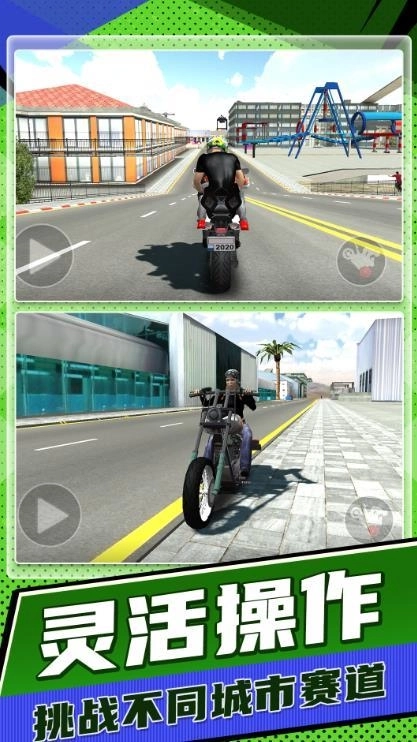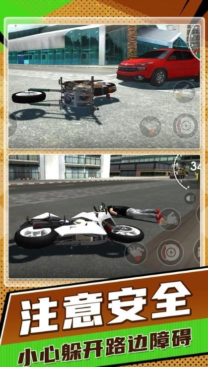 2.摩托车发动机音效与环境音效相结合,使玩家在驾驶过程中能真切感受到摩托车的轰鸣声。