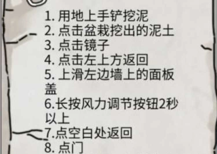 1、首先查看后视镜上的纸条,记住其中提到的规则。