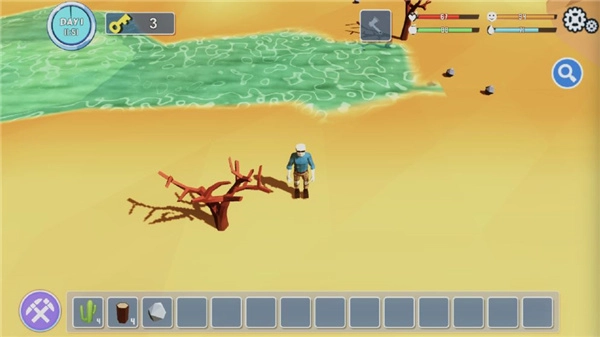 留意界面生存数值饥饿、口渴等,用收集的资源制作工具、补给,维持生存状态,应对环境挑战。
