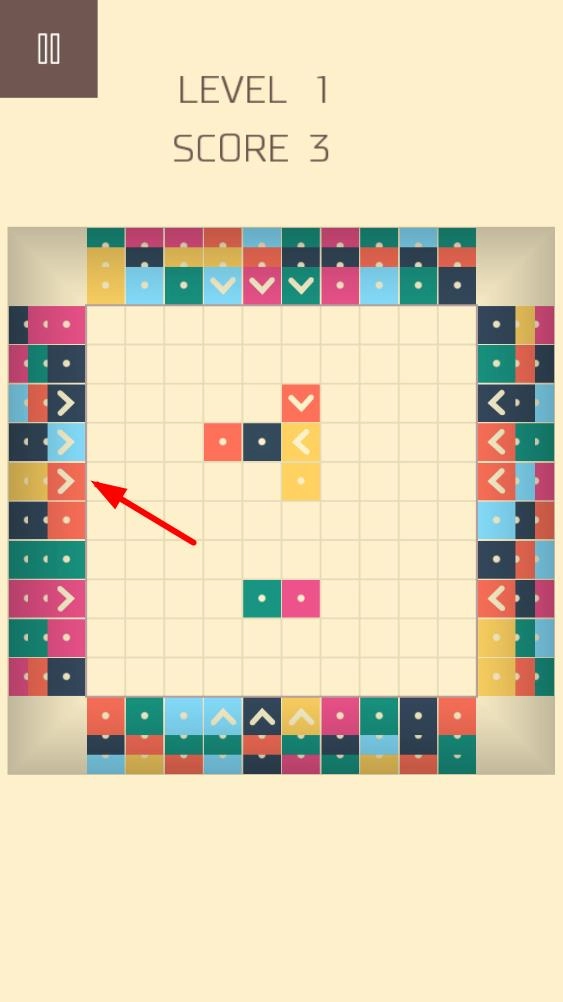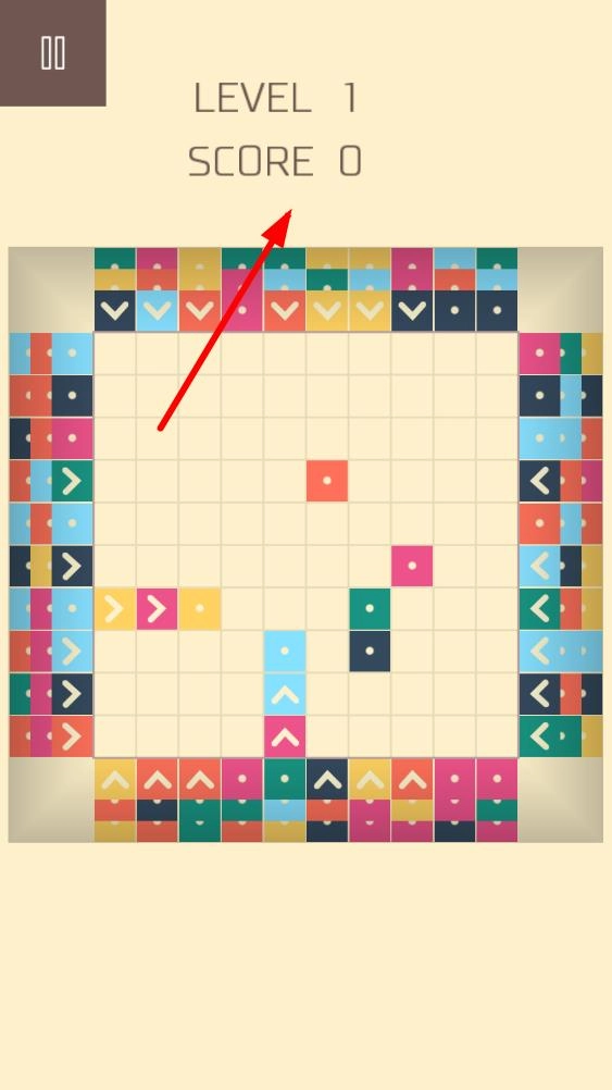进入游戏后,方格中初始分布少量方块,点击四周带箭头的方块调整位置,尝试让同色方块相邻,为消除做准备。