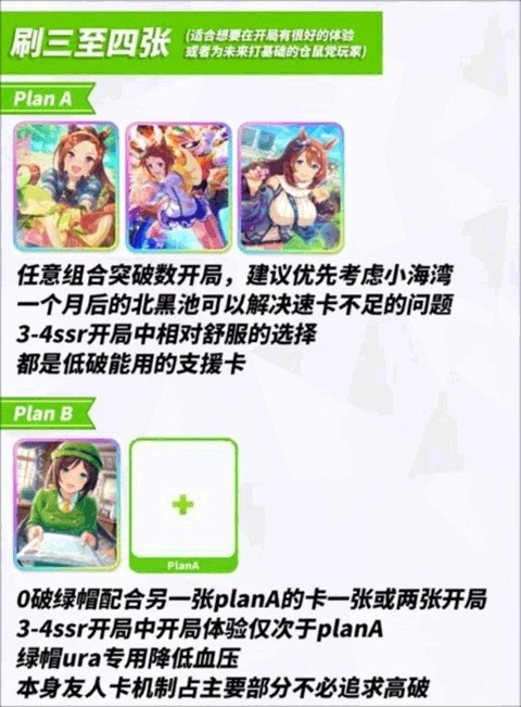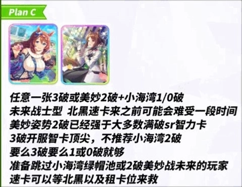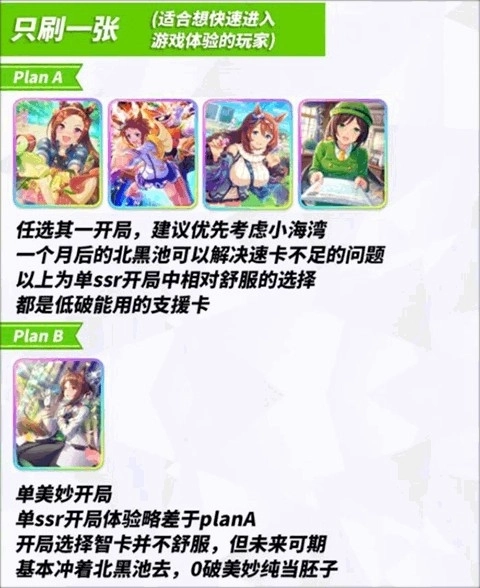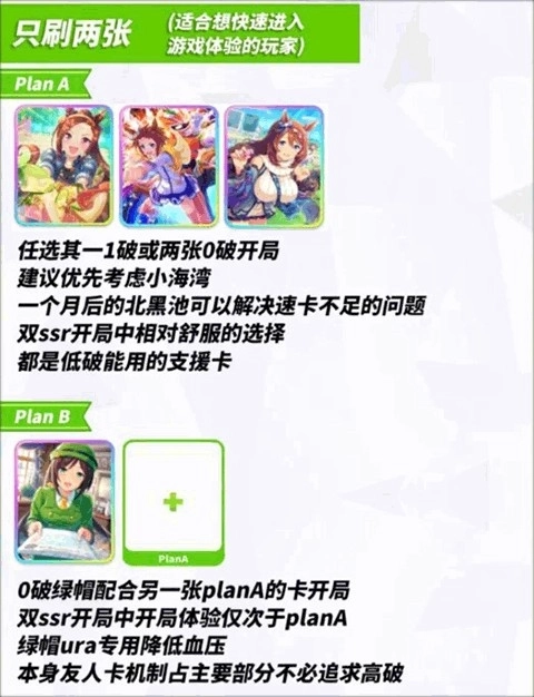 首先看方案A,这四张卡片里随便选哪张都挺合适的。不过小海湾是我个人比较喜欢的角色,而且她的实战能力也很强,所以更建议大家优先考虑她。