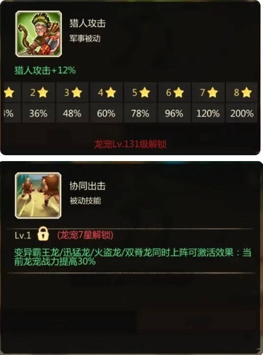 主要适用于龙宠对决与远征模式,随着星级提升会逐步解锁,可提供各类被动加成效果。