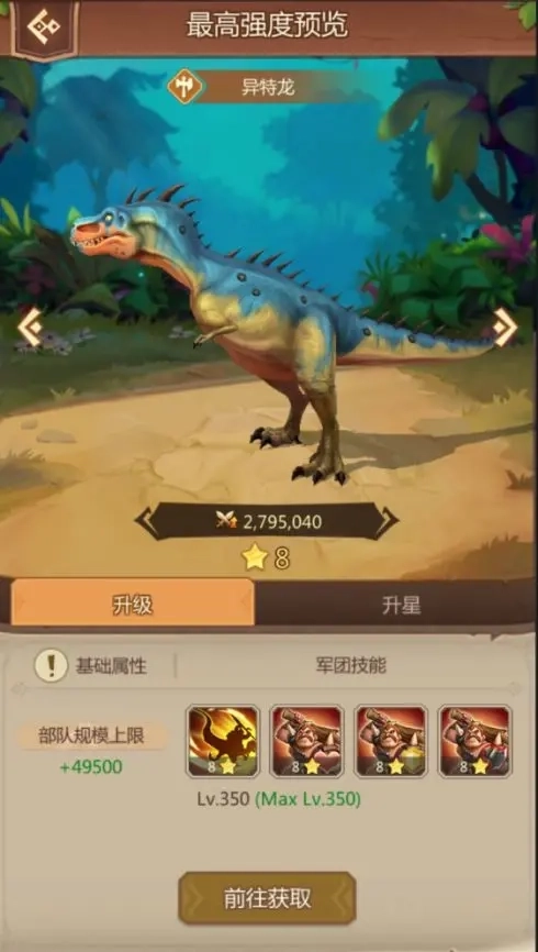 5、士兵的主要用途集中在野外探索领域,像采集资源、狩猎恐龙或者攻打敌对部落都离不开他们。合理搭配不同兵种能让你比其他玩家发展得更快,举例来说,采集任务建议选用巨兽来提升效率。