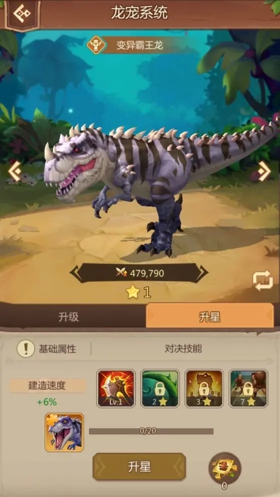 玩家可以通过消耗指定道具来提升龙宠的等级,以此解锁新的技能,并且需要按时对龙宠进行突破操作。突破所需的材料大多是通过击败恐龙获取的,另外,龙宠能够达到的最高等级会受到首领大屋等级的制约。