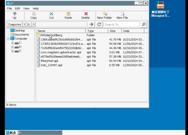 9、通过滑动屏幕来操控鼠标指针,进入D盘后,在里面找到MiSideGoldBerg文件夹。