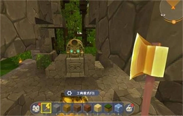 3、找到神庙后,要是看到像上图那样的头像建筑,玩家就能得到进入大神庙的机会。不过想进大神庙,光找到小神庙可不够,还得多砍树才行!