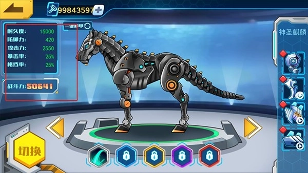 2、在机甲仓库中,能够查看机甲的各项属性以及战斗力情况。