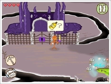 2、画面里呈现蓝紫色的熔岩区域会对火柴人产生伤害,一定要避开这些危险地带。