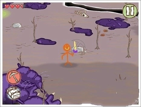 游戏里我们的主角火柴人和它手里的武器,这些全都是自己画出来的,并非系统自带,这一点确实让人眼前一亮,此前从未见过能自己编辑主角形象和道具的作品。在游戏中,我们可以在滑板上画出各式各样的火柴人,也能绘制出各种工具,这是本作最大的亮点,高度的自主控制权,让玩家们能真切体会到游戏的魅力所在。