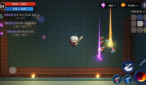 1、游戏采用横版操作模式,玩家能够自由控制角色进行移动、战斗,同时躲避敌人的攻击。