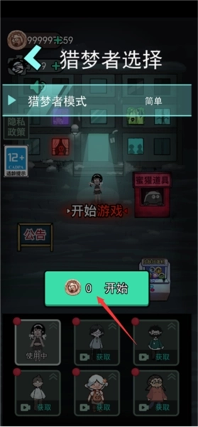 1、首先需要进行一局正常模式的游戏,才能解锁猎梦者玩法的图标。