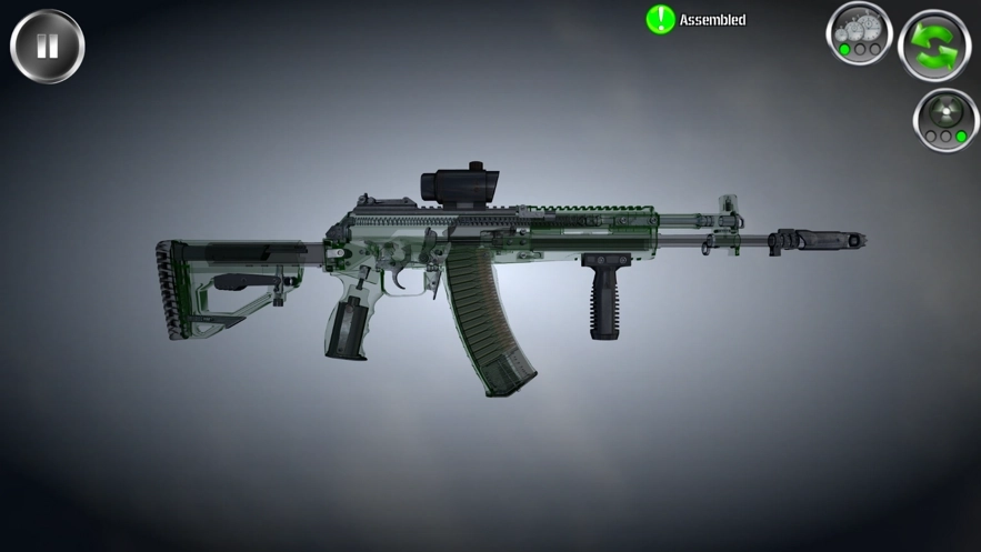 1、游戏运用3D画面模拟技术,以360度全方位无死角的方式呈现枪支零件的各个角度,助你对其形成深刻认知
