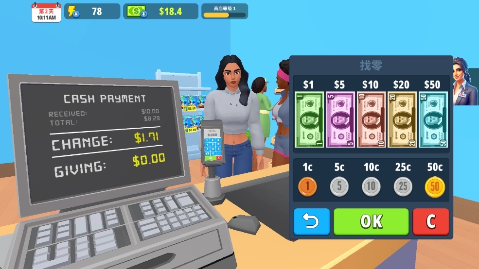 1、这是一款面向大众的休闲模拟游戏,考验你的经营策略与数字计算能力。通过这款3D模拟游戏,展现你作为店长的出色管理才能。