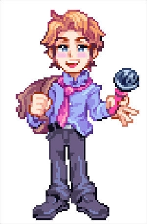 他是一名高中生,浅肤色配上草莓金色的头发,穿着蓝色衬衫和粉色领带,背着书包,手里拿着粉红麦克风,表情随着歌曲的节奏不断变化,呈现出各种不同的状态。