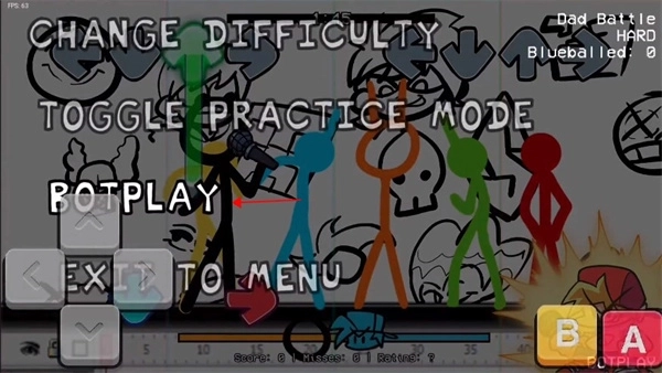 3、对战时点击返回按钮,找到“botplay”选项就能开启自动模式。