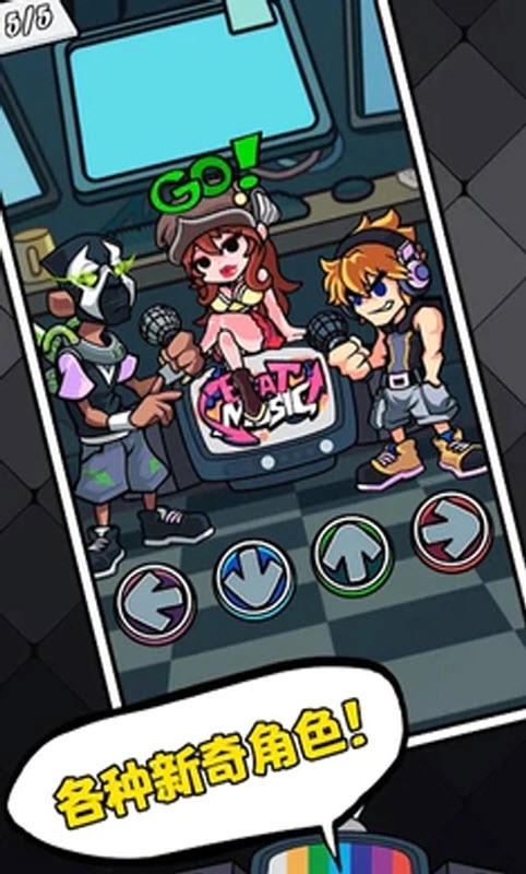 《黑色星期五之夜节奏对战》是一款全免费的音乐节奏游戏,玩家可在其中体验轻松解压的音乐闯关乐趣。游戏采用卡通画风,角色造型Q萌讨喜,整体视觉呈现十分舒适。作为音乐类游戏,它的曲库资源丰富,包含多种风格的音乐作品,能满足多数音游爱好者的需求。