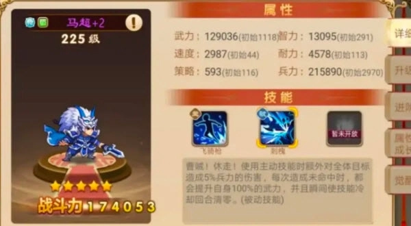 1、武力值高达1980,和孙策处于同一水平,而且在第十位出手时能获得200%的武力加成,相比孙策更有优势。搭配一级赤兔马可以保证我方最后一个行动,在推图场景比如日常周常、北伐还有魏国守卫这类高难度副本里发挥出色,十分适合平民玩家进行培养。