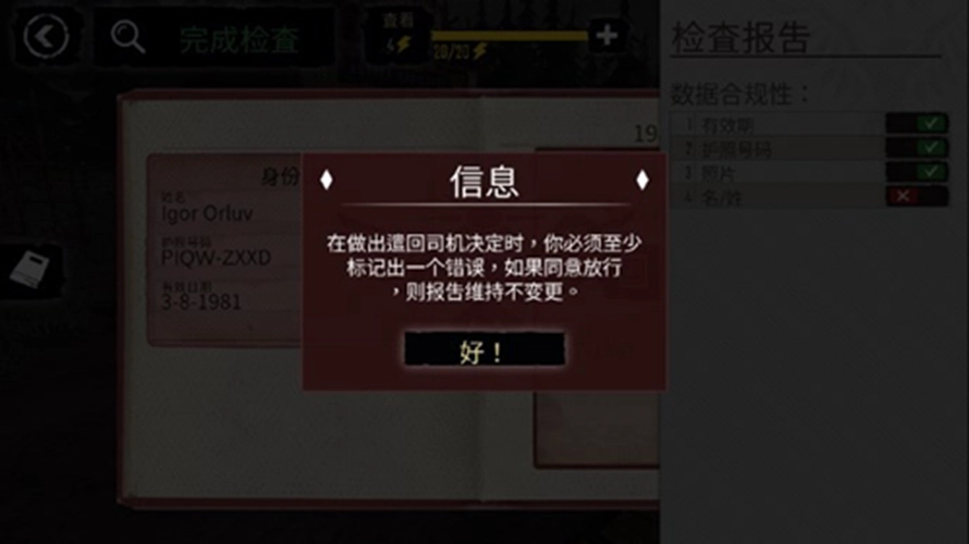 当出现这些情况时,玩家需要留意并予以拒签;若所有信息核查确认无误,即可盖章准许其通过。