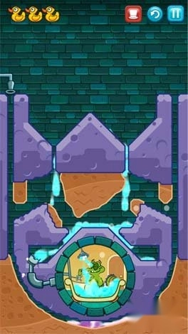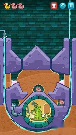 4、最后,将清水引入小鳄鱼的澡盆,即可完成关卡。