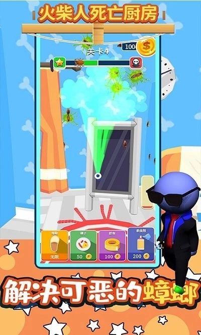 进入游戏后,玩家要粉碎屏幕上的蟑螂并把它们全部消灭!借助所有可用的道具来完成所有关卡,还要在这类需要击杀蟑螂的游戏里取得最高分。