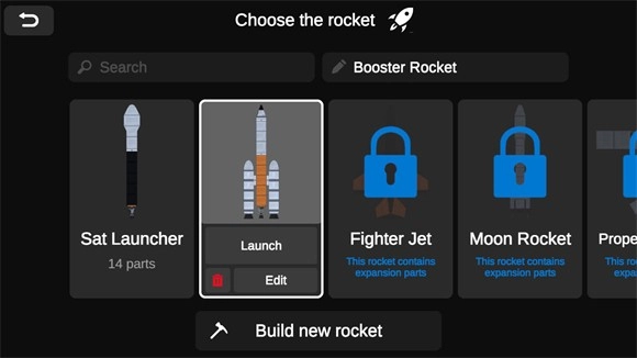3、点击后可以选择现有的火箭进行发射,也可以点击build new rocket来创建新的火箭。