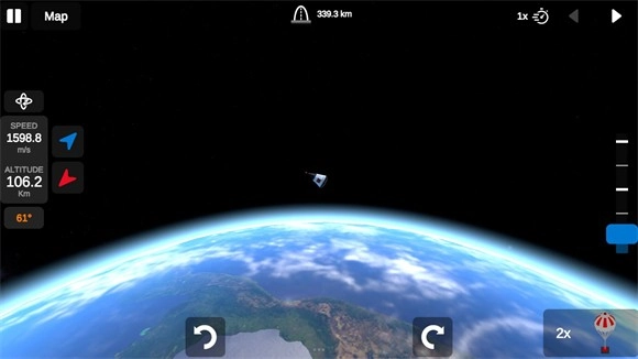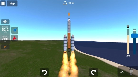 6、选好一个发射台后点击右下角的按钮来点火发射,右侧的蓝色按钮是引擎推力按钮。