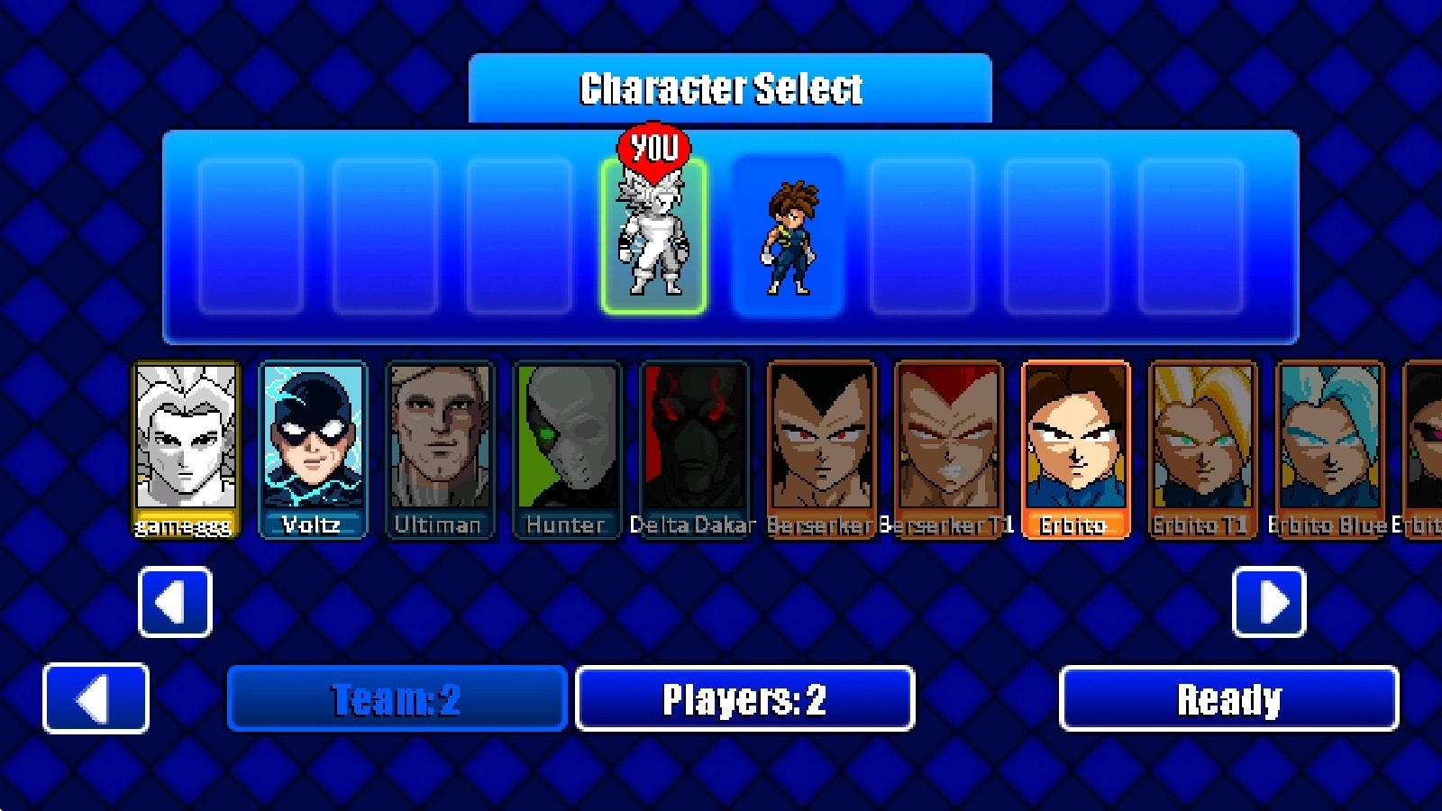 3、例如最简单的对战模式,我们可以选择不同的人物进行对战。