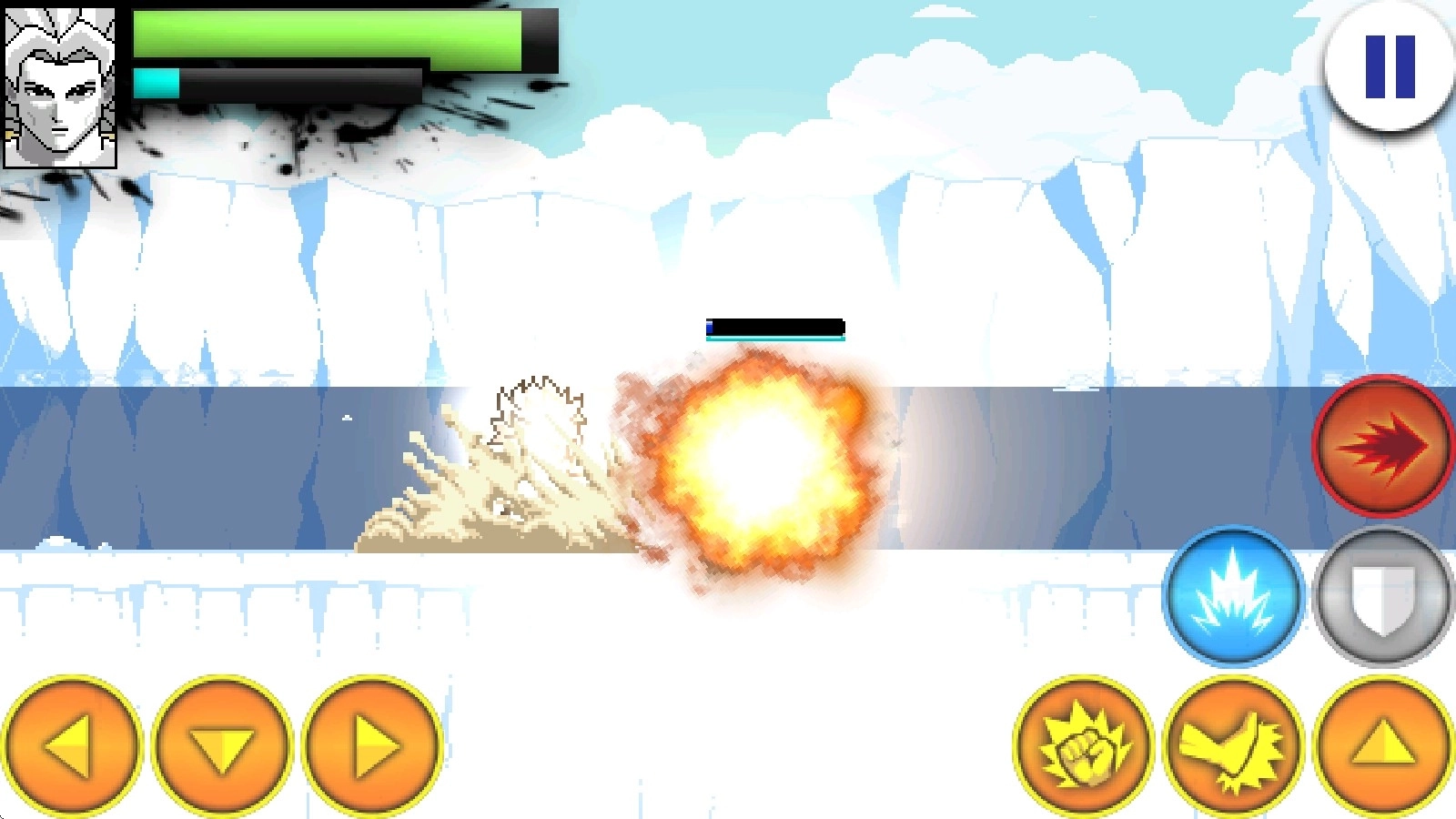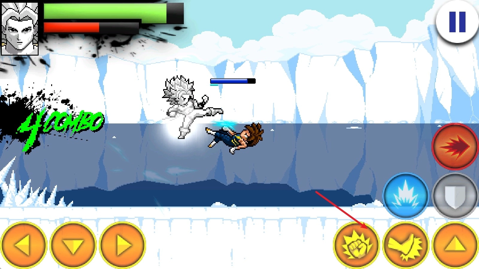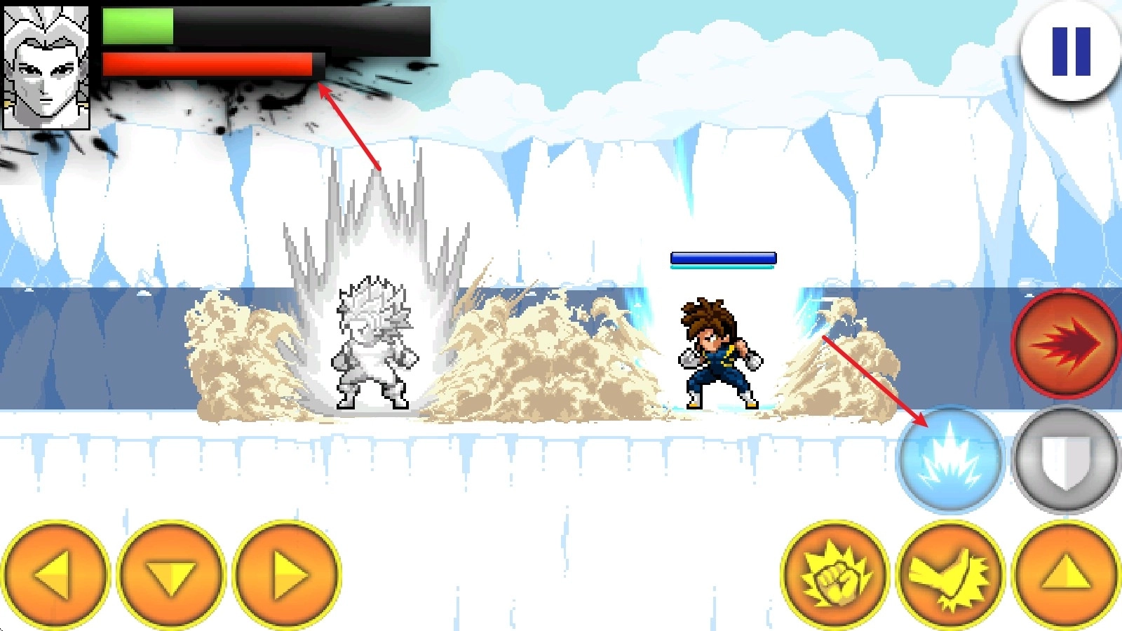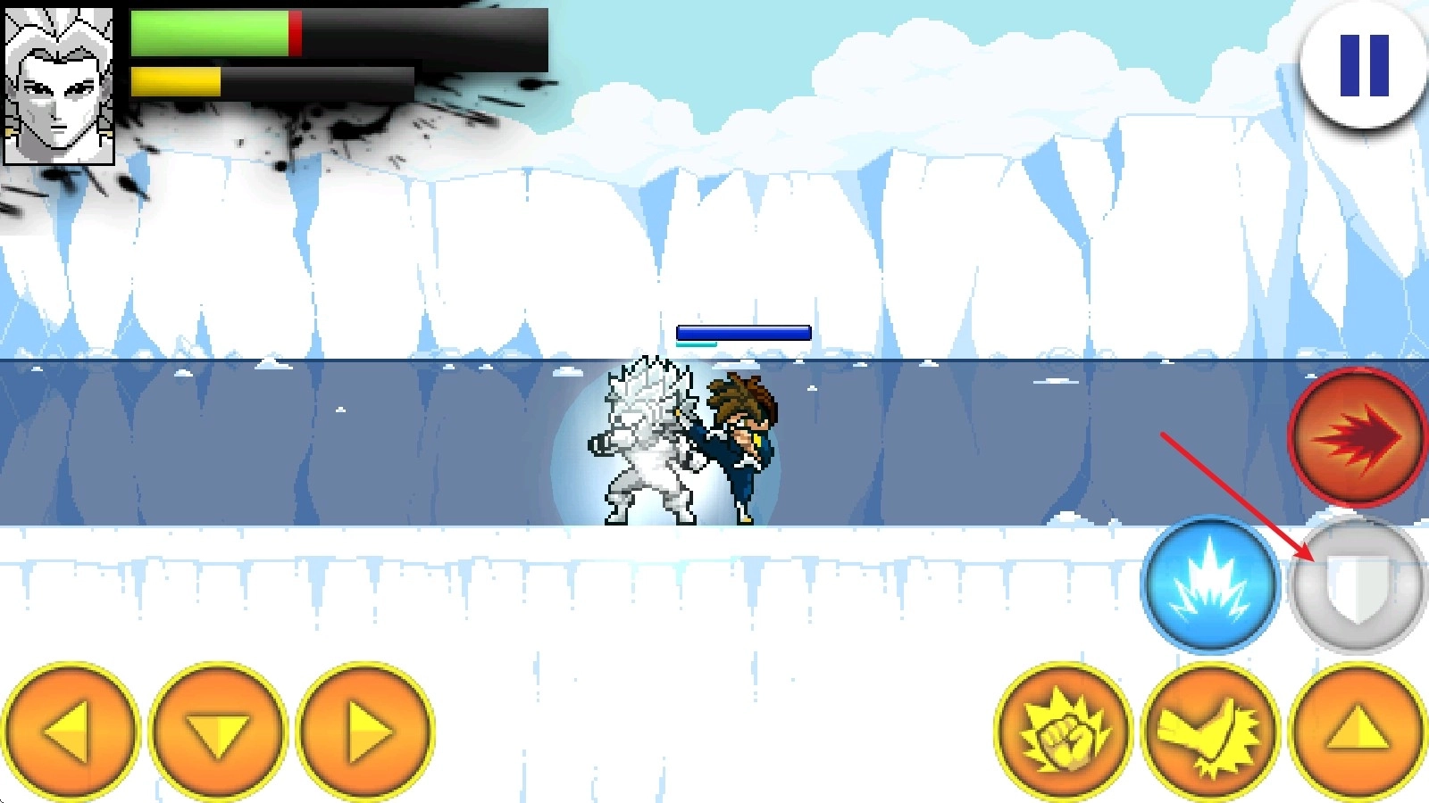 4、战斗开启后,左边的方向键用于操控移动,右边的上键负责跳跃动作。