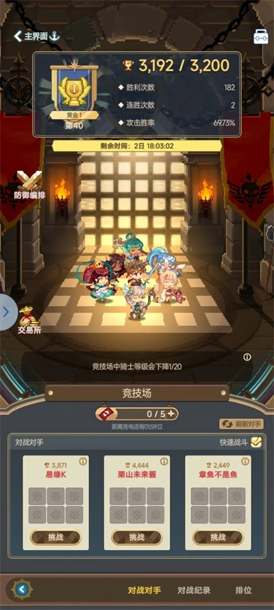 通过晋升、觉醒和装备等方式培养骑士,提升队伍实力。