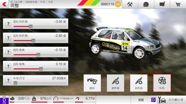 1、底盘:传动比的调整需先解锁二级变速箱,它会影响赛车的加速度与最高速度表现——向右拉动可获得更绵密的传动比,能让加速更迅猛但最高速度会相应降低,向左拉动则效果相反;扰流板的角度设定也很关键,角度越大下压力越强,但过大会导致车头翘起,角度太小又容易使车辆在高速行驶时车尾飘起,进而引发失控或因摩擦力不足导致提速困难;制动偏差方面,若数值过大,会出现后轮刹死而前轮仍在转动的情况,数值过小则是前轮先刹死而后轮还在转动。