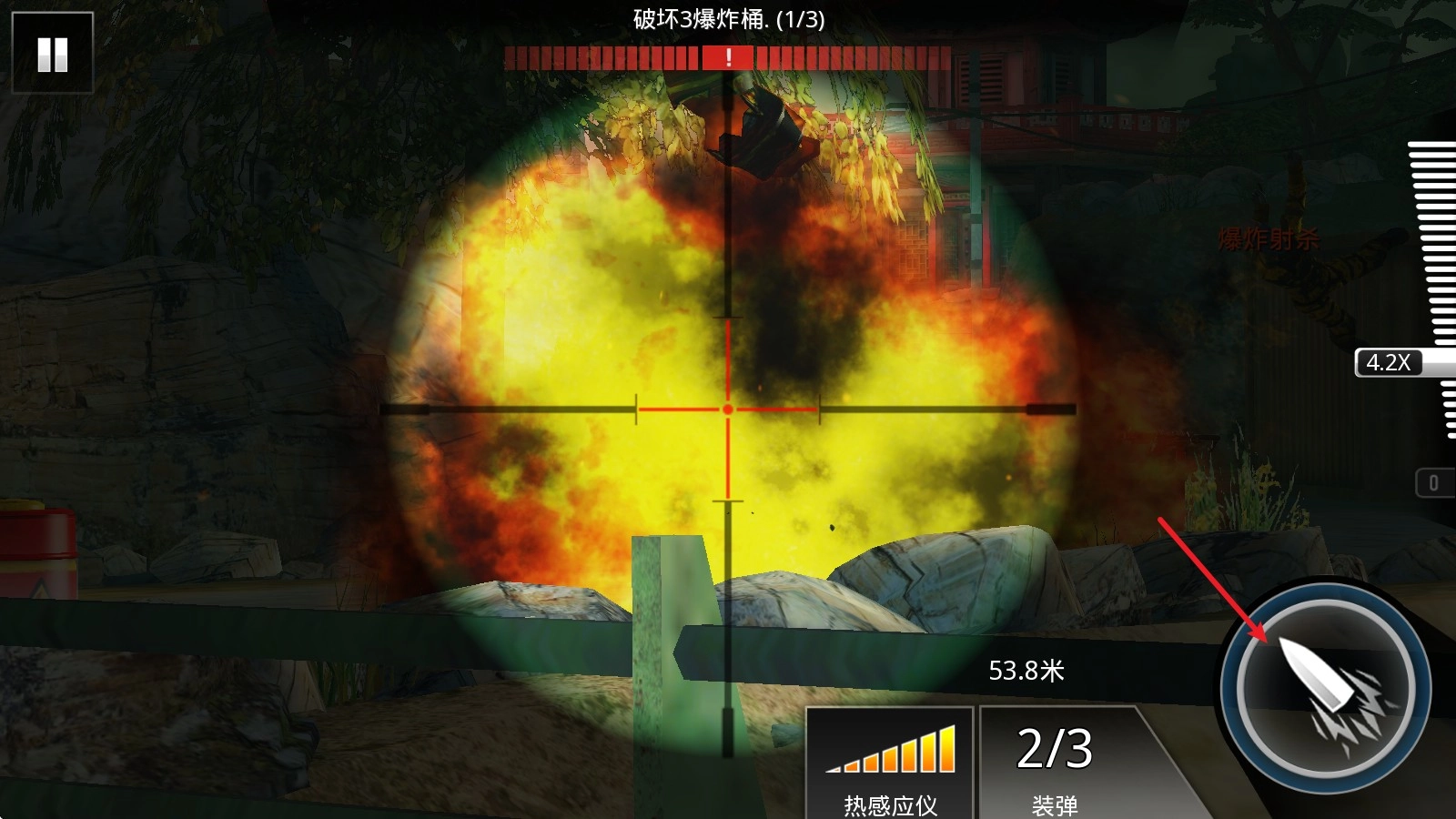 4、瞄准后点击右下角按钮即可射击。